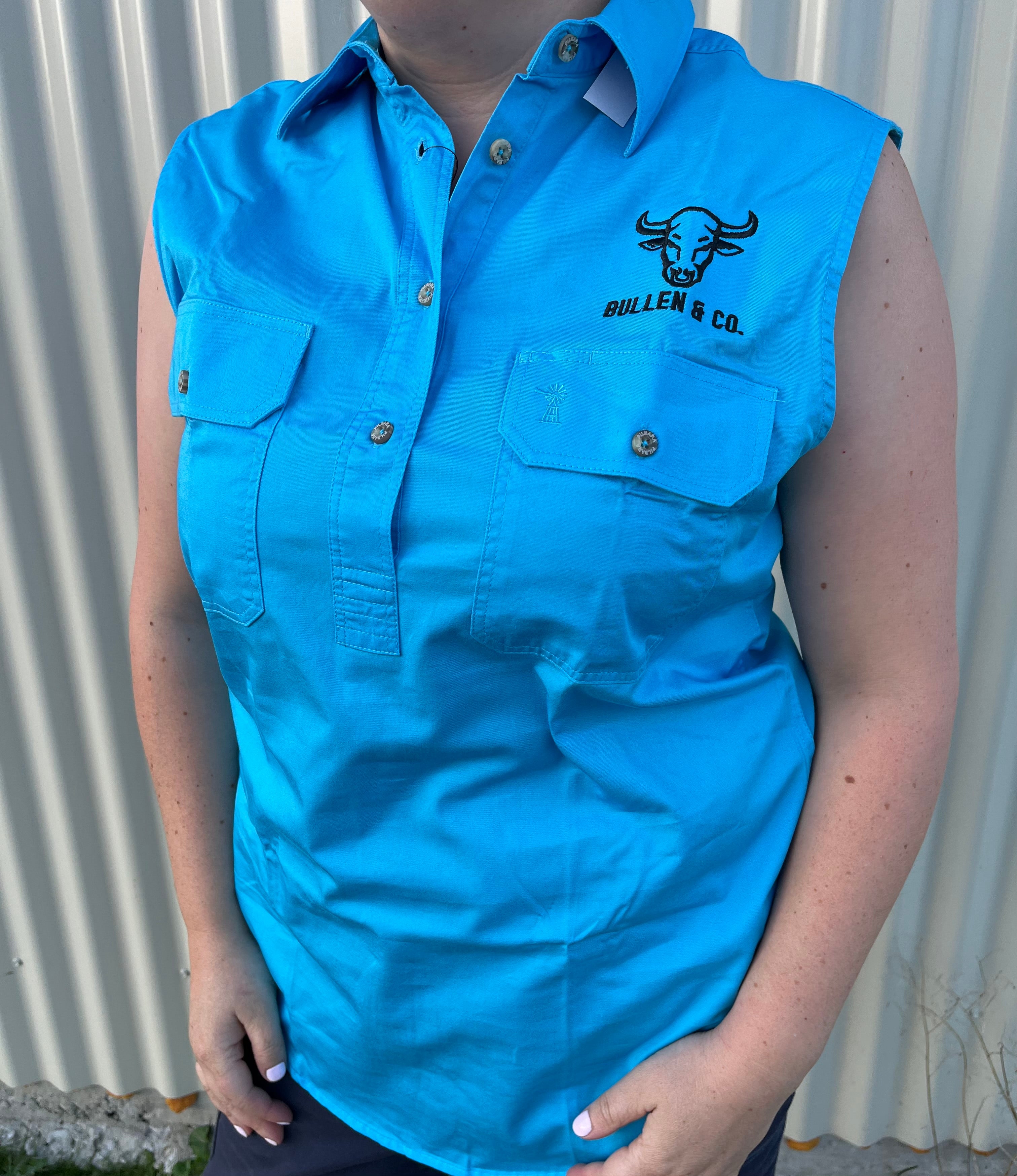 Ladies Sleeveless Work Shirt CORNFLOWER